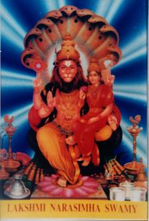 A group of workers were breaking down stones on a hill called Sampath Giri in Polur village in Thiruvanamalai dist. of Tamil Nadu. Workers were busy doing their job. One of the workers sphear hit a rock, and for everyone’s shock it started bleeding. They were frightened and left for the day. One the same night, Lord Narasimhar showed in one of the devotees dream. Lord Narasimhar said that he has come one his own to sampathgiri as shantha Murty. Next day, the devotee informed this to the villagers. All villagers came to see the idol. They were all shocked to see the lord bleed. All the villagers came together and built a Maha Mantapam for the lord Narasimhar. They worshiped the lord with great bakthi and shraddha. A temple was built atop of the hill for lord Narasimhar. Later people installed Lakshmi- the consort of Lord Narasimhar.